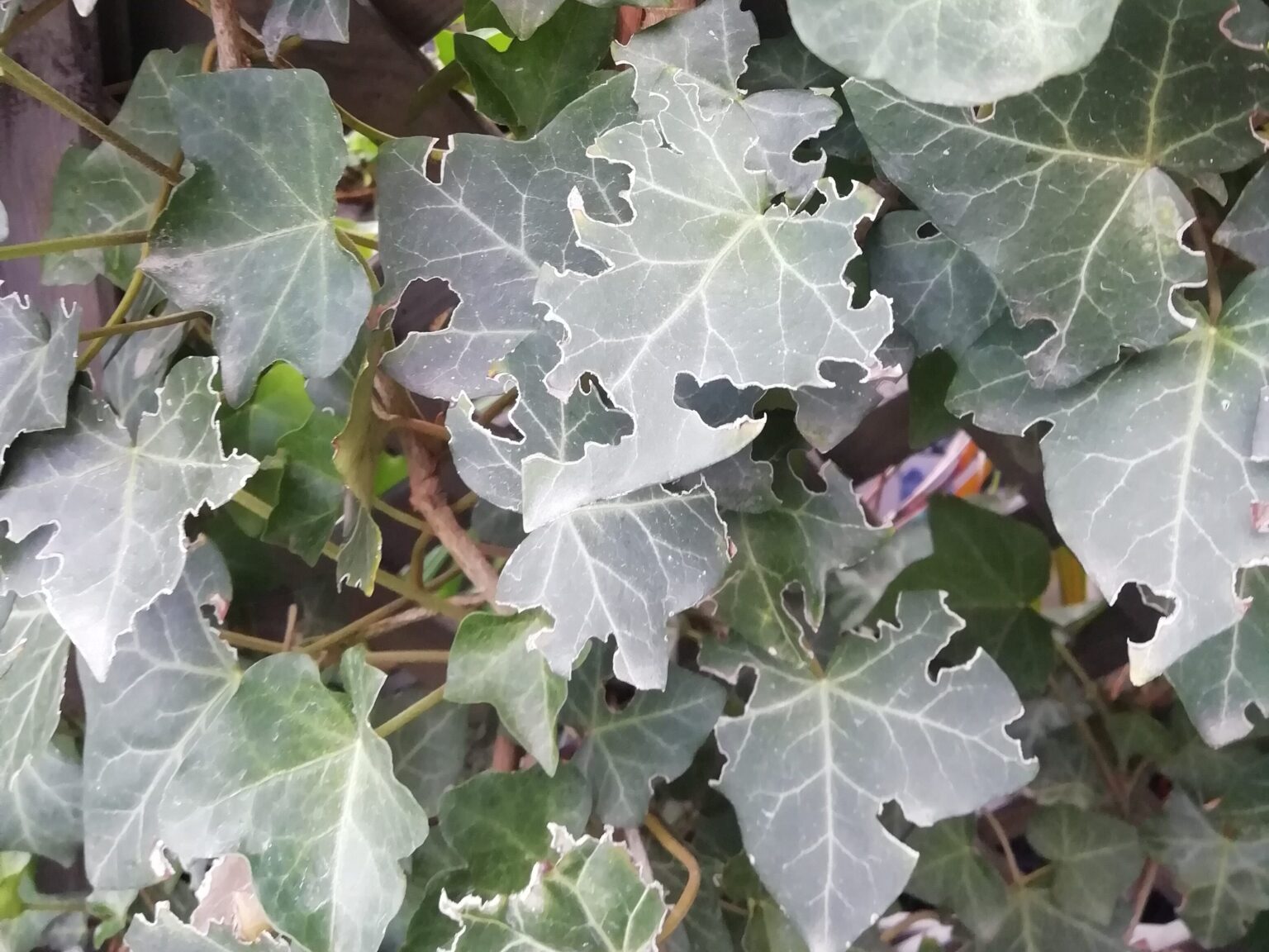 Bluszcz zaatakowany przez opuchlaka. Widać charakterystyczne zaokrąglone wygryzienia na brzegach blaszek liściowych.