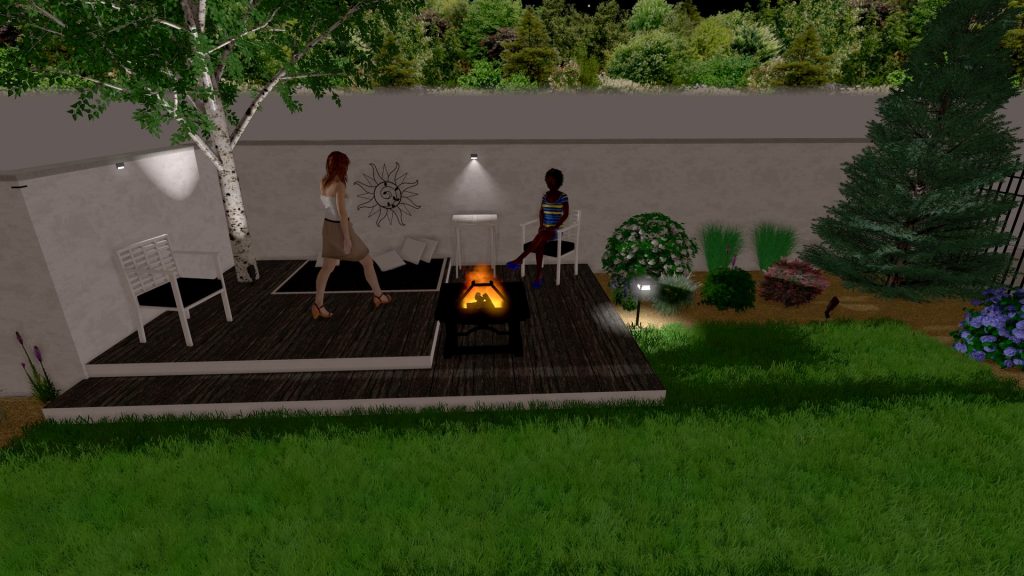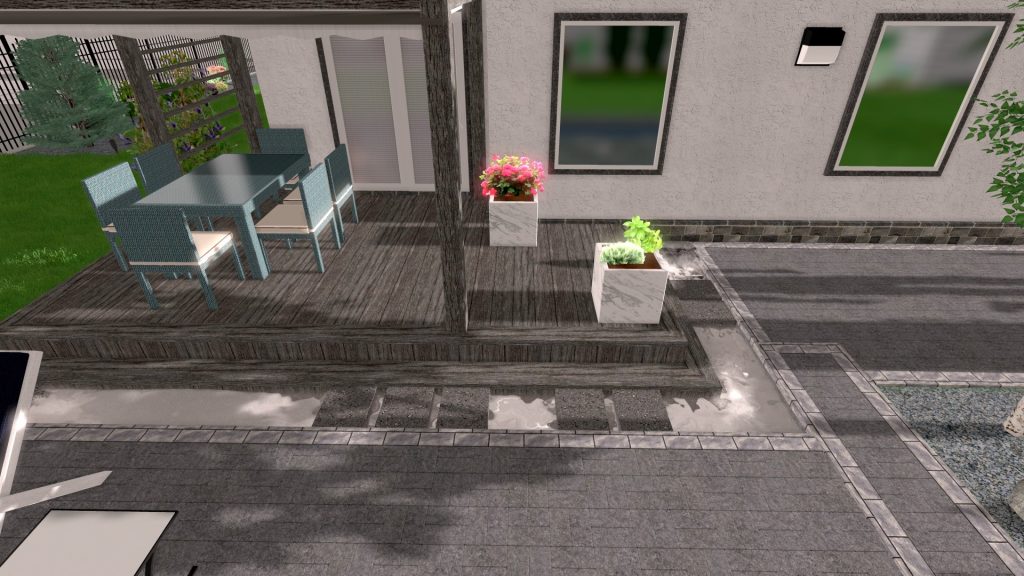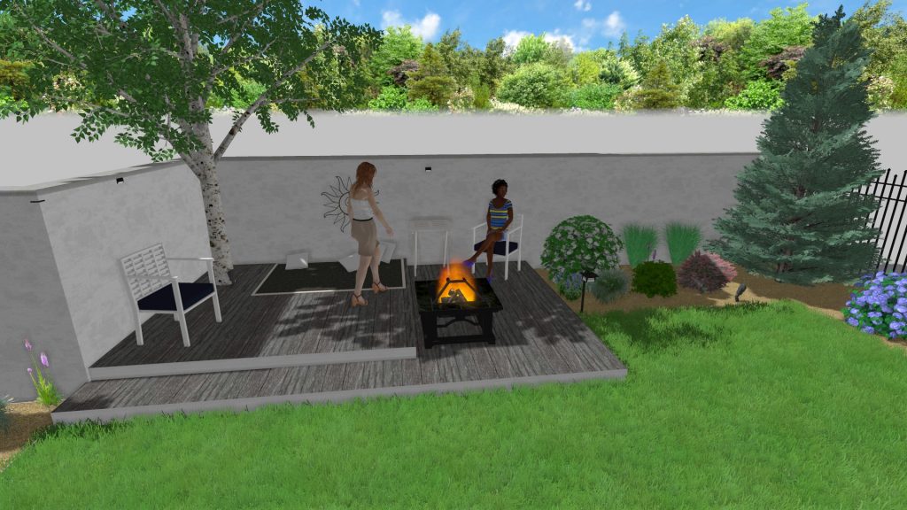 Dodatkowo zaprojektowałam stopniowany taras w dalekim kącie działki. Ma to być miejsce wyciszenia w czasie leniwego, niedzielnego dnia, a wieczorem na zorganizowanie ogniska z przyjaciółmi.